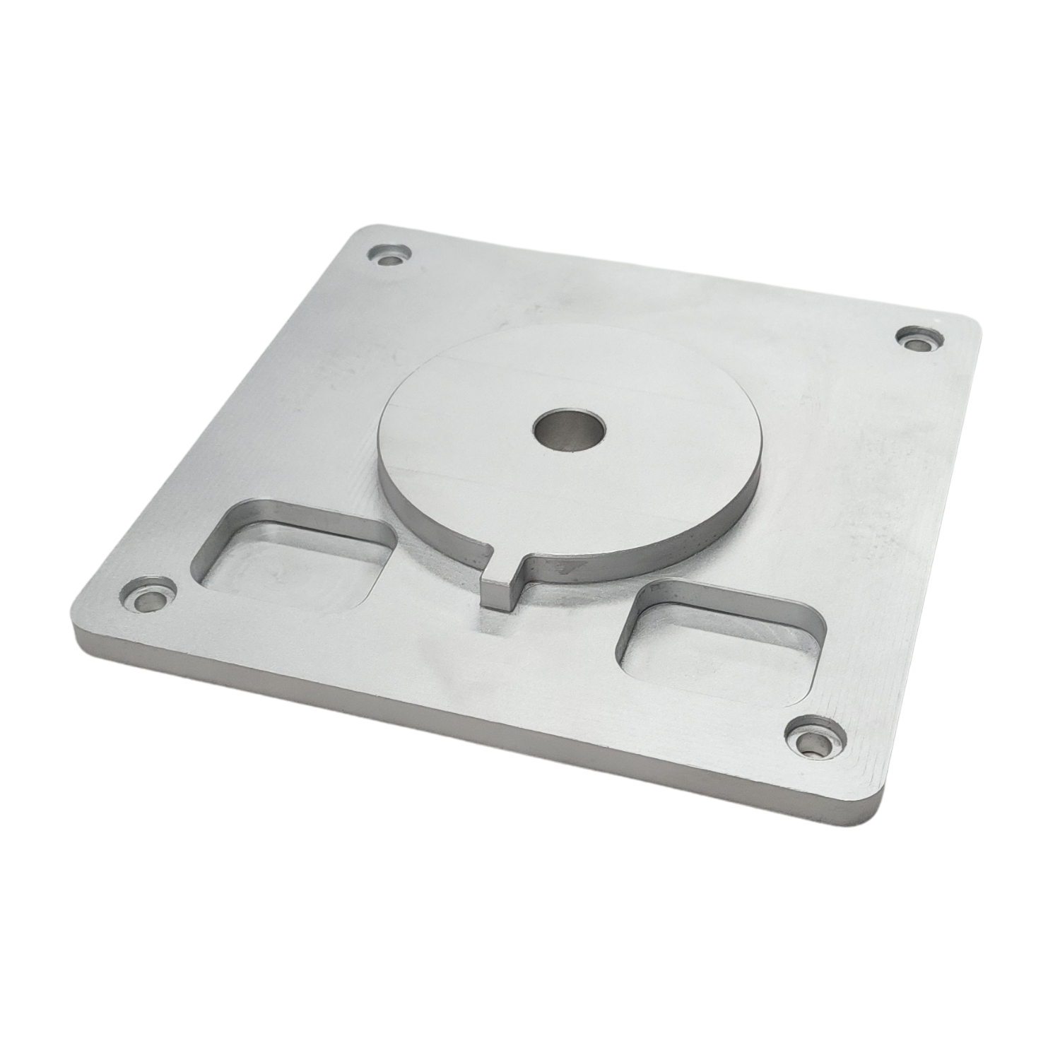 The Astroworx Pegasus Nyx-101 Pier Adapter Plate provides four recessed mounting holes (180mm x 180mm square pattern) to mount the plate. The pier adapter plate also includes 1 central M10 Central mounting bolt and Aluminium washer.