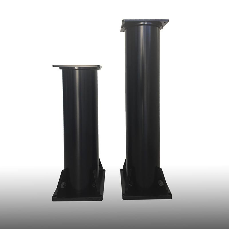 The Astroworx permanent piers are constructed from aluminium alloy. Four aluminium side struts are bolted between the pier tube and the base plate to eliminate side flexure of the tube assembly under heavy or off-centre loads.